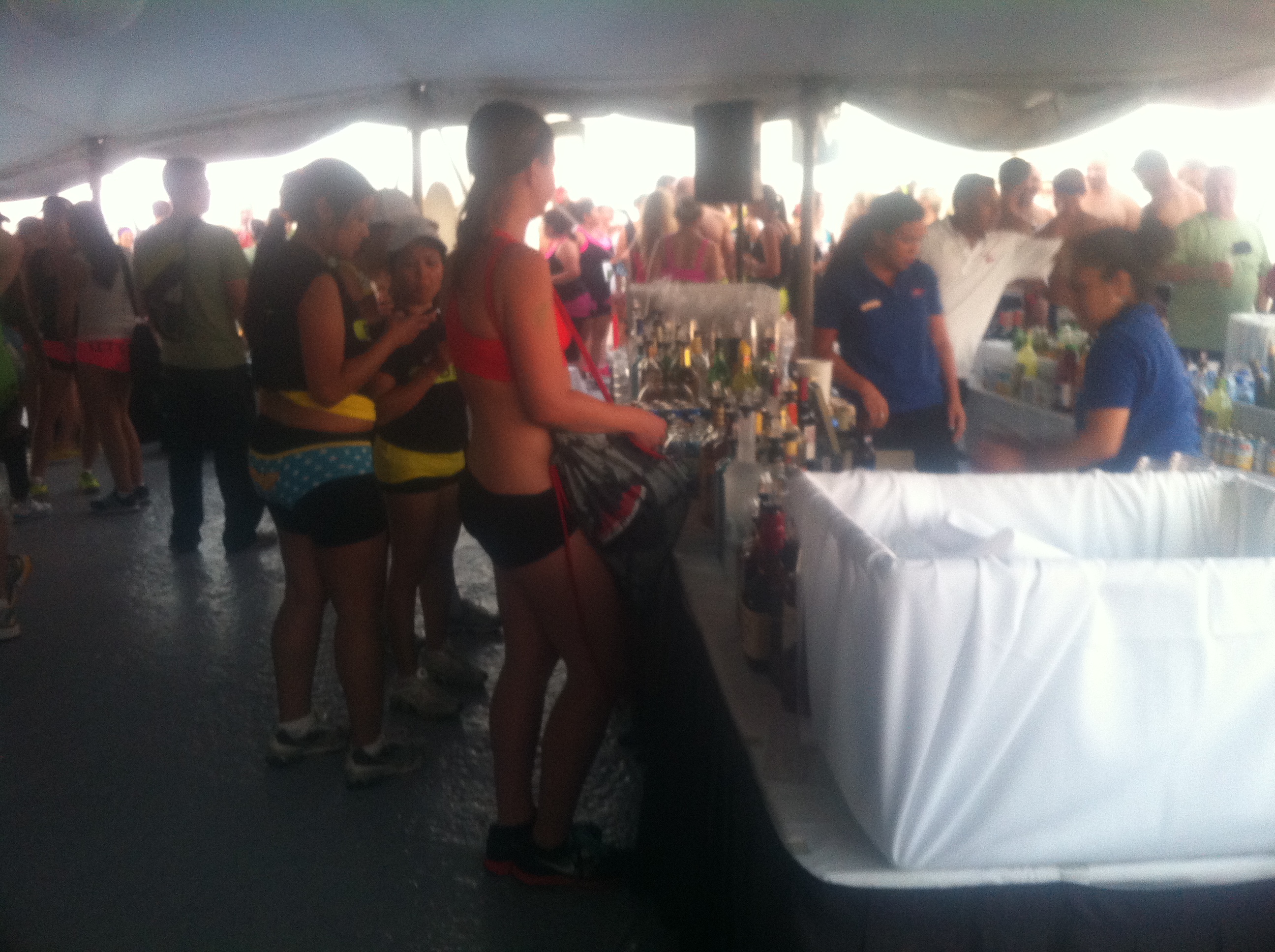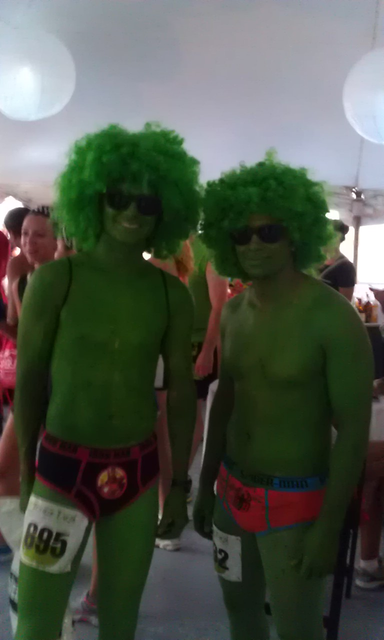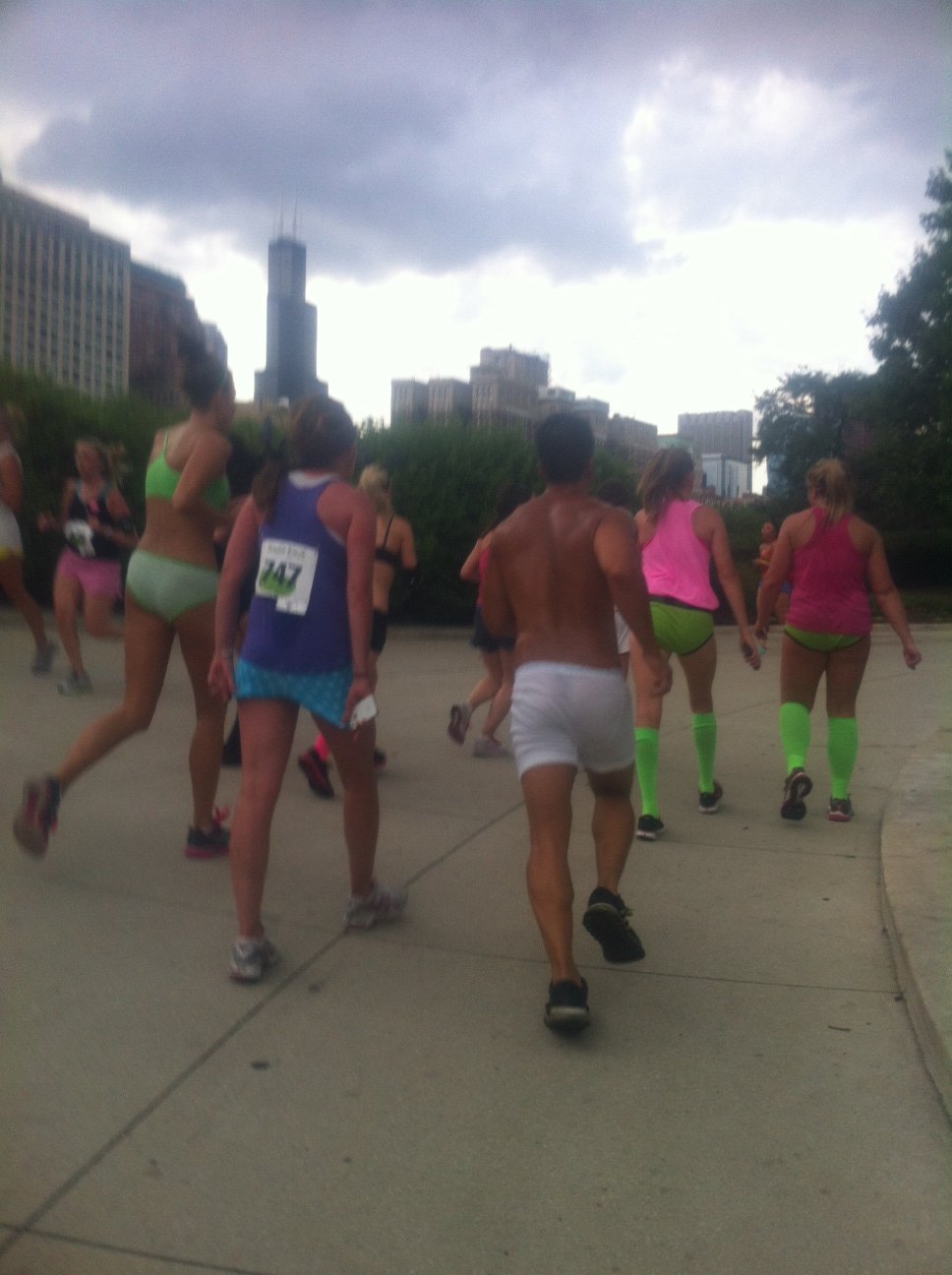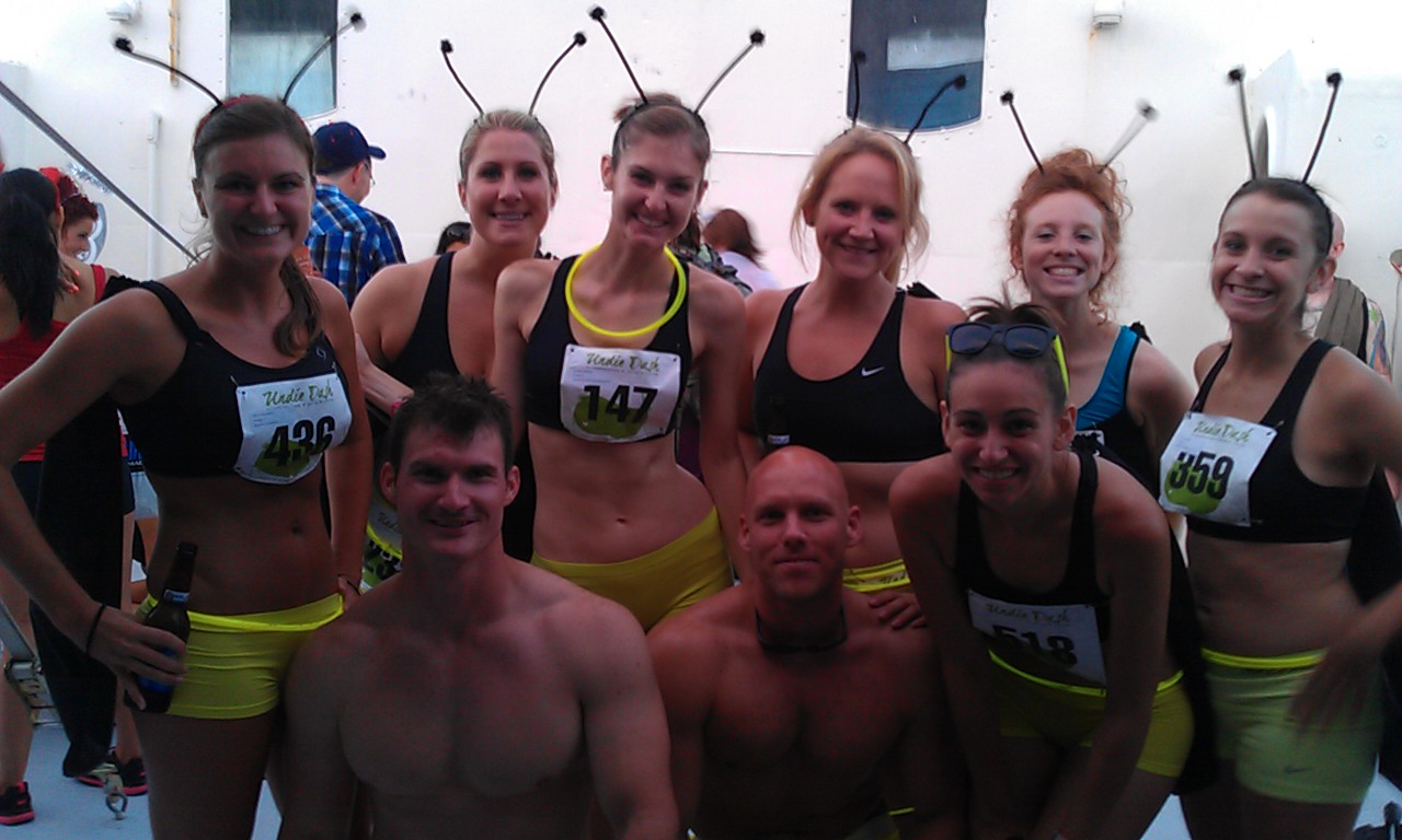 It ‘s that time of year again. A time in which people from miles away converge on the city of Chicago to run 3.1 miles in their underwear. This was the 2nd annual Undie Dash and this years turnout was amazing. Weather conditions were hot and humid and the course was laid out along Monroe Harbor’s beautiful lakefront. Some participants dressed in undie based costumes while others participated in standard tighty whities. As the following image files will show, runners have great imaginations and know how to have a good time. This year the “after” party was held onboard a docked ship with music, dancing, food and a full bar. It is an event that must be seen in person to be believed. If you didn’t attend, the next best thing is the gallery of pictures that I have compiled of the “Undie Dash & Bash” that were taken by me and my friends Jeff and Lisa. Although, I must give credit where credit is due and inform you that a portion of the pictures at the end are from the Undie Dash Facebook Page. My apologies to any of you who were kind enough to pose for pictures but were not included in the gallery. 90% were very clear but the remaining 10% were not good enough quality to be posted. So without further ado, I give you the 2012 Undie Dash 5k image gallery.